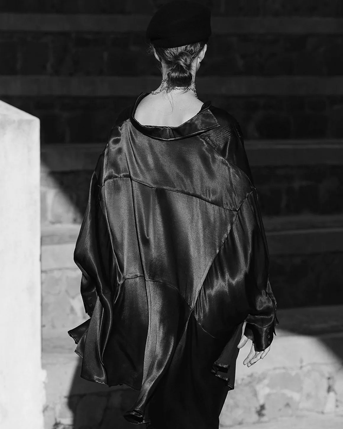 Réalisée Dans Un Satin Viscose D’Une Couleur Noire Profonde, Elle Se Porte Souple Et Dessine Une Silhouette Spectaculaire Et Scintillante.