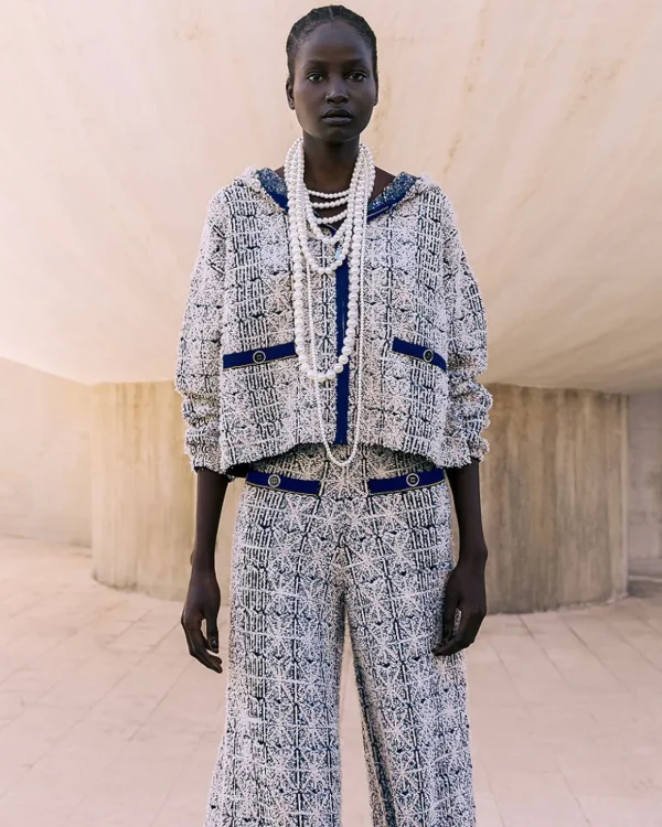 Ligne Souple Pour Notre Cardigan À Capuche En Tweed De Laine Navy Et Écru. Cette Pièce Est Réalisée Pour Apporter De La Douceur À Votre Quotidien, Son Esprit Décontracté Est En Contraste Avec Sa Matière À L’Esprit Couture.